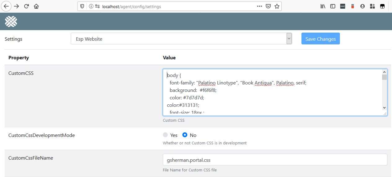 - Once done, change the CustomCssDevelopmentMode back to No, and Apply Changes.