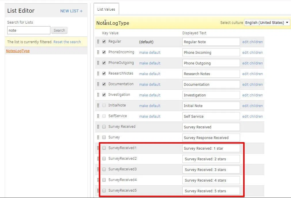 - The Notes Type will be SurveyReceived + the score, e.g. SurveyReceived2 or SurveyReceived5.