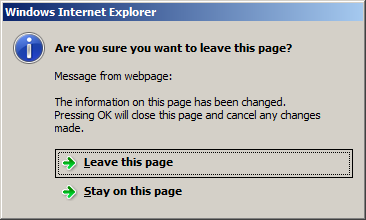But there is no OK button available. Clicking on either "Leave this page" or "Stay on this page" may not allow the user to move on.